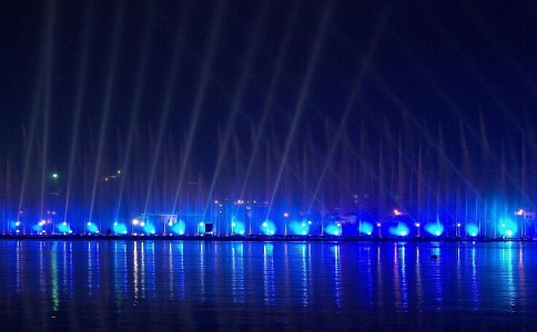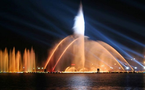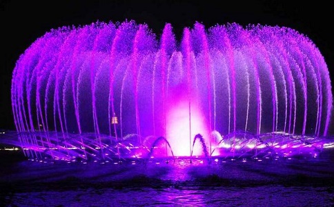 音樂噴泉隨著音樂變換,為城市的人們在夜間增添一份美輪美奐的視覺和聽覺的盛宴,是快節奏的城市生活夜間一項頗為浪漫